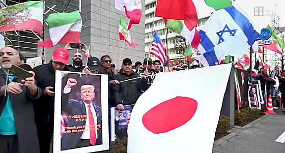 ●母国の自由を求める在日イラン人らはアメリカとイスラエルの攻撃を感謝するデモを開催した。